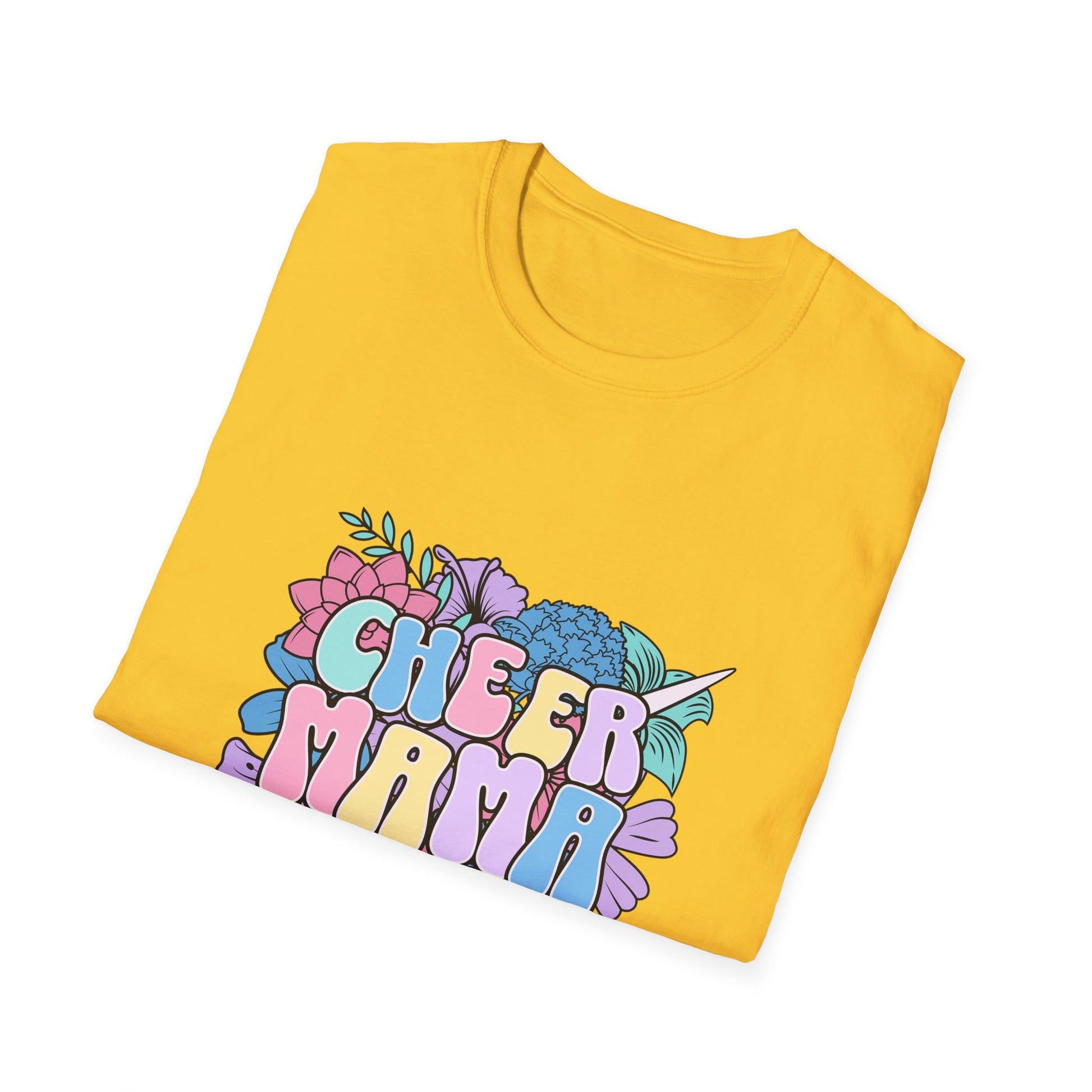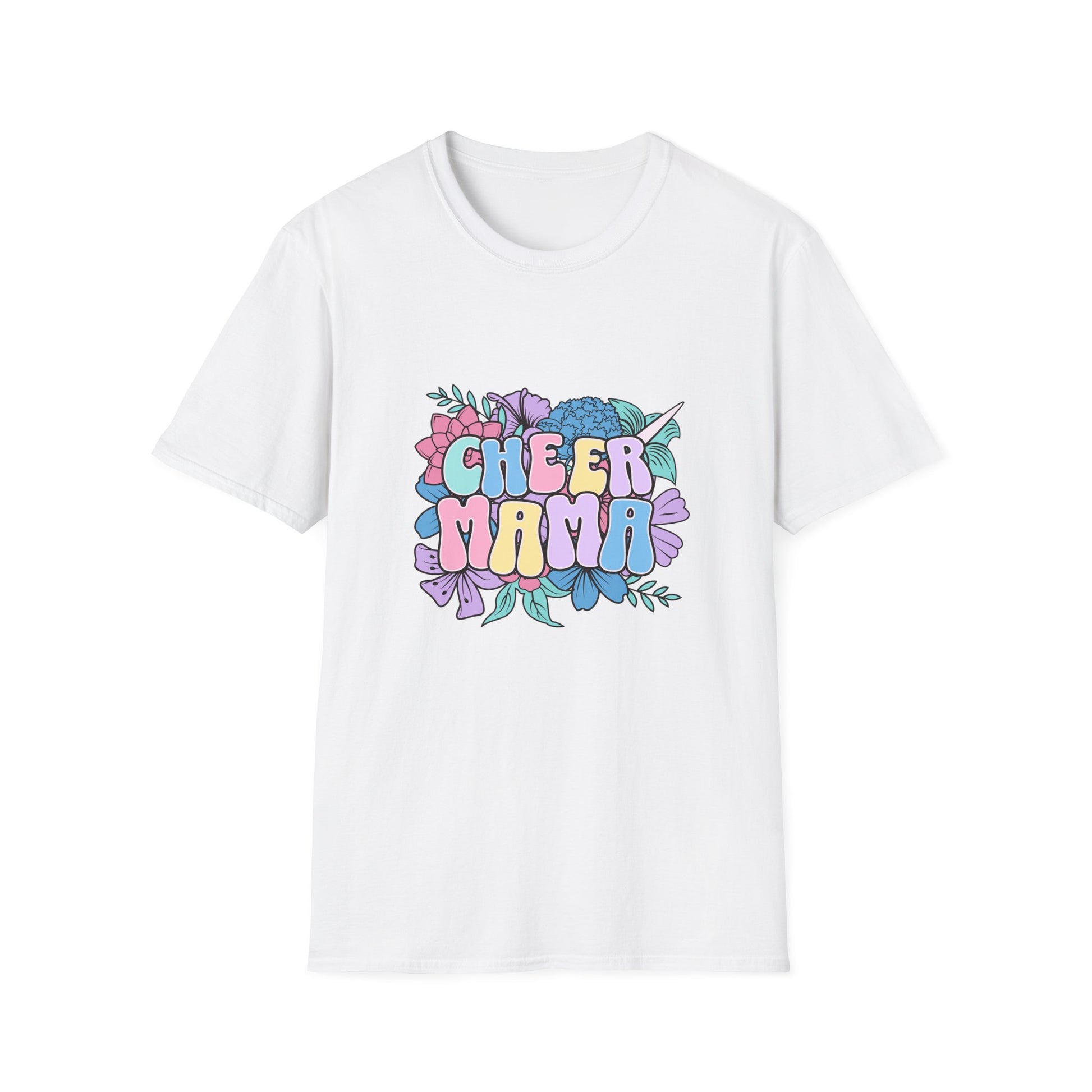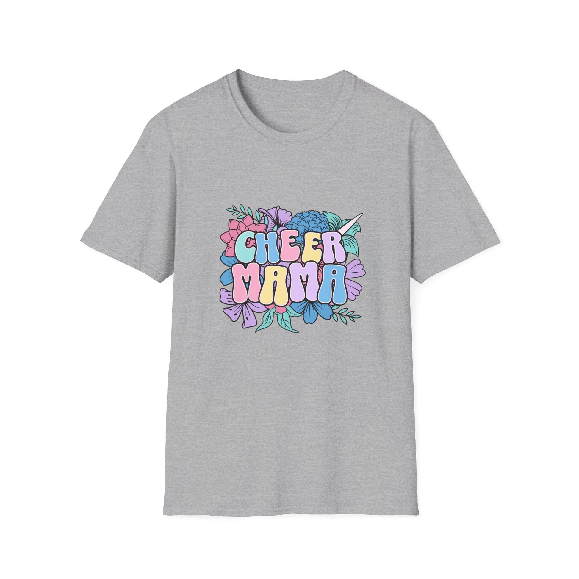 Cheer Mom Tee - Groovy Floral Bliss | Bold Colorful Lettering with 70's Vibes