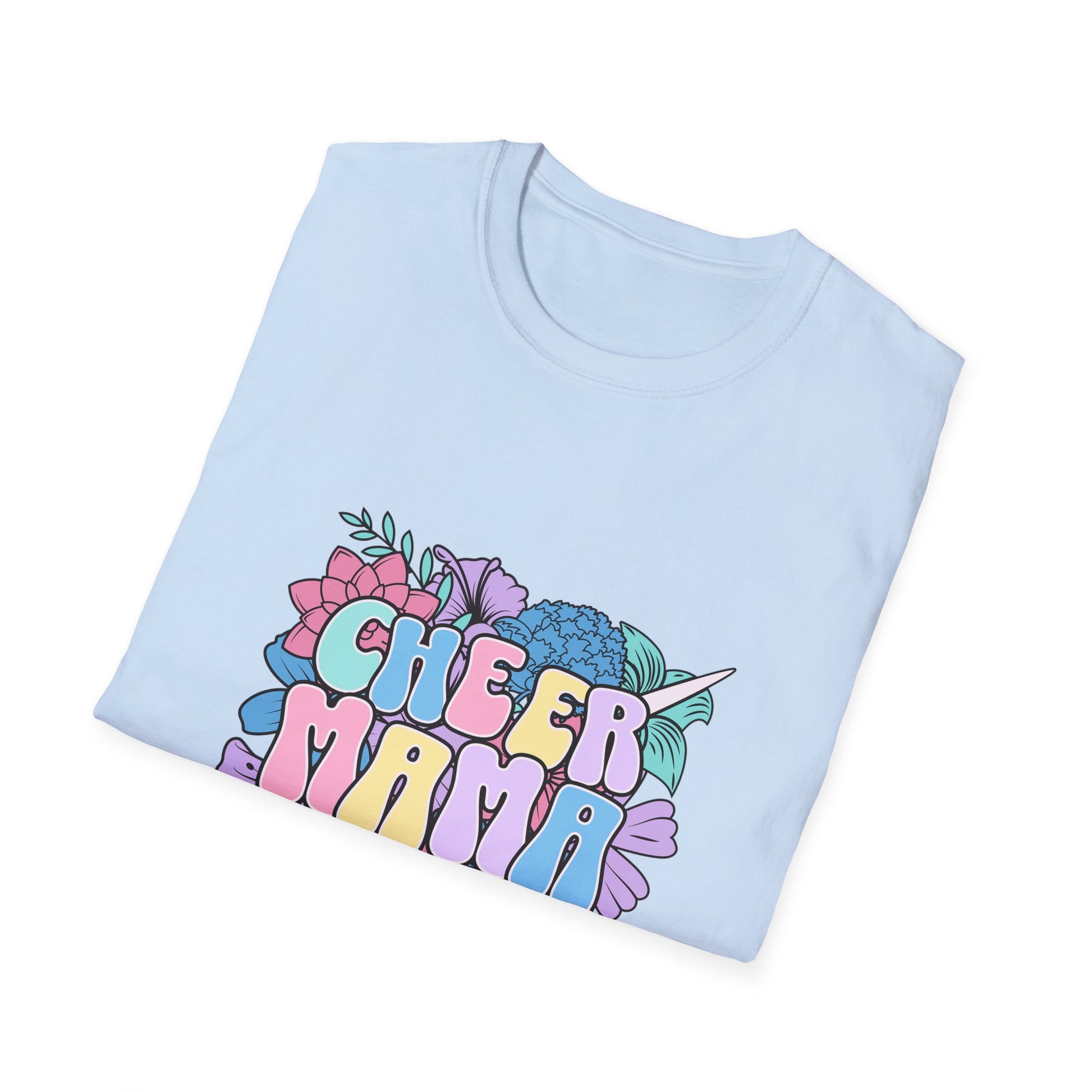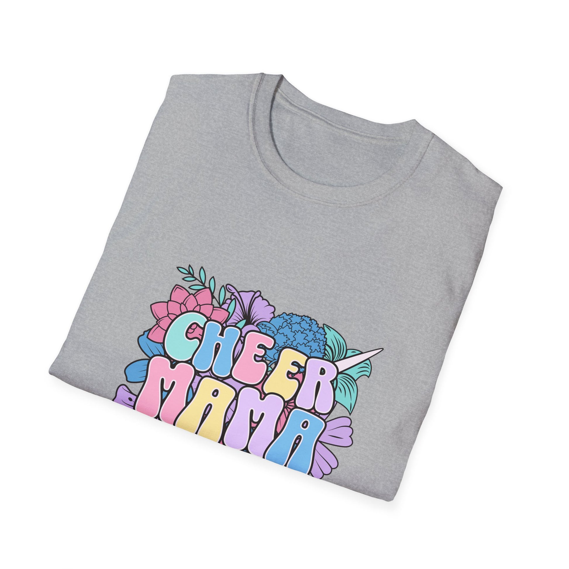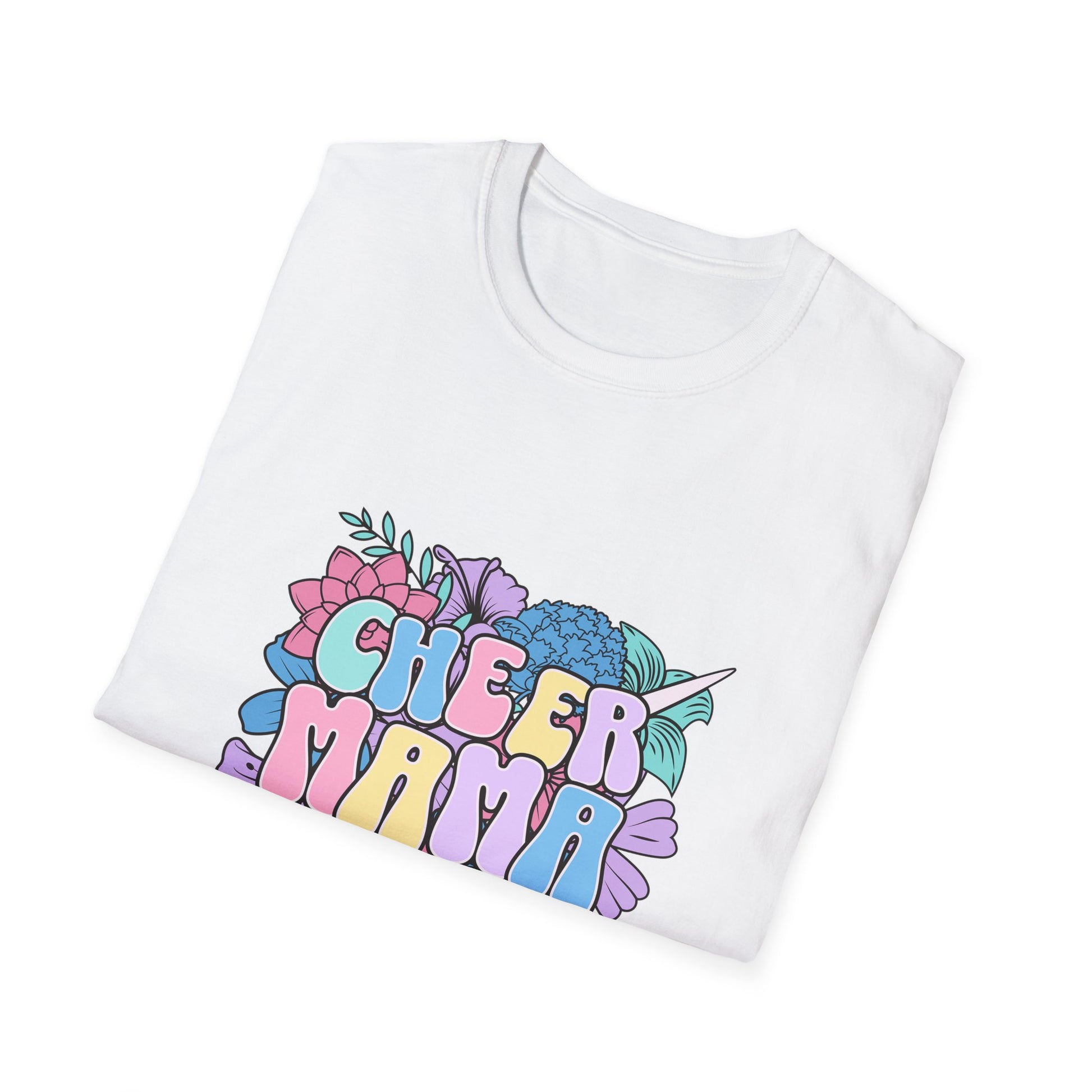 Cheer Mom Tee - Groovy Floral Bliss | Bold Colorful Lettering with 70's Vibes