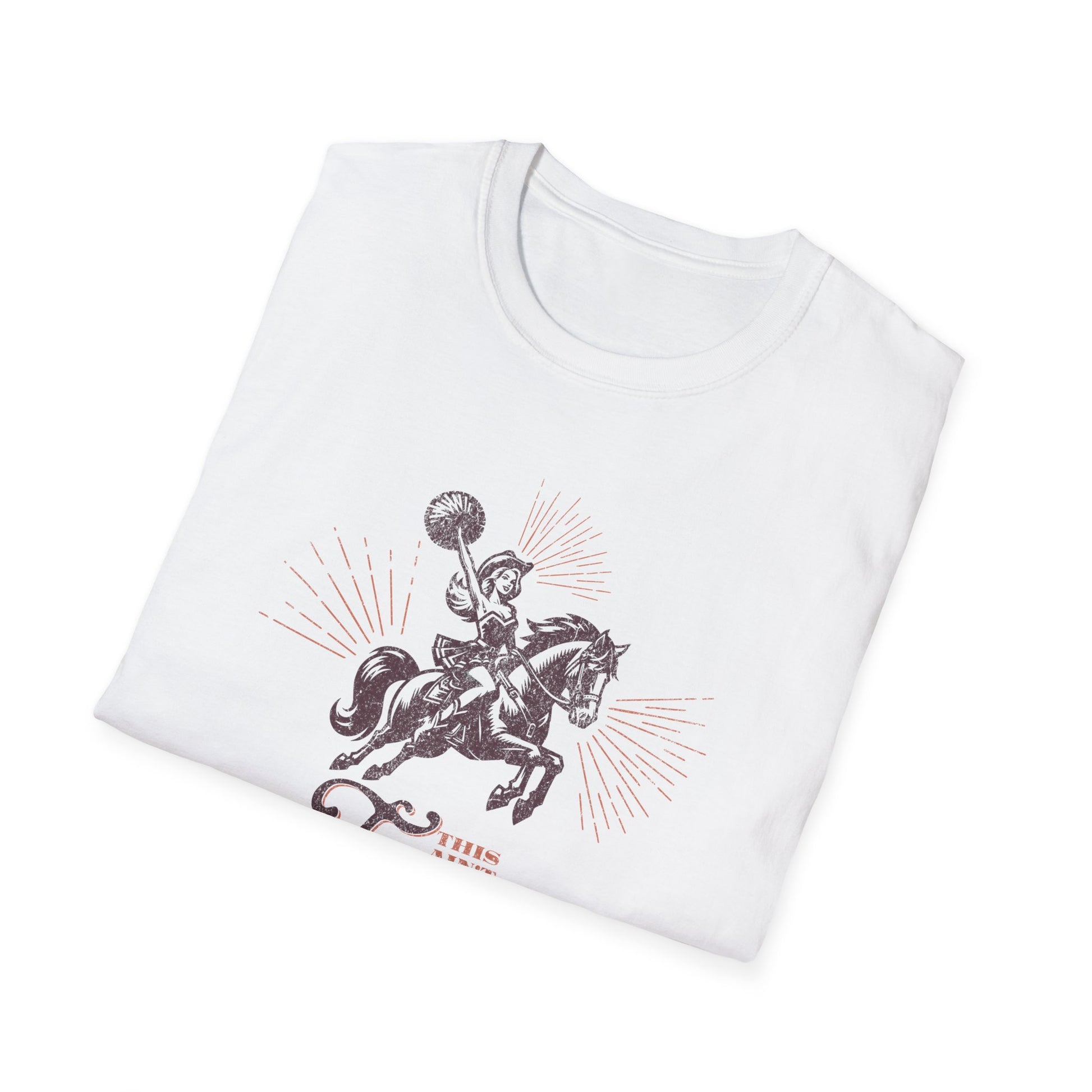 Retro Cowgirl Cheerleader Tee - "This Ain't Texas" | Beyoncé & Nashville Glam Western Inspired Style Description: Saddle up, y'all! Introducing our Retro Cowgirl Cheerleader exclusive collection that seamlessly blends the inspiration of Beyoncé with the charm of Nashville's glam western vibe mixed with the sassiness of cheerleading. This ain't your typical Texas cheer—this is a whole new level of southern chic!