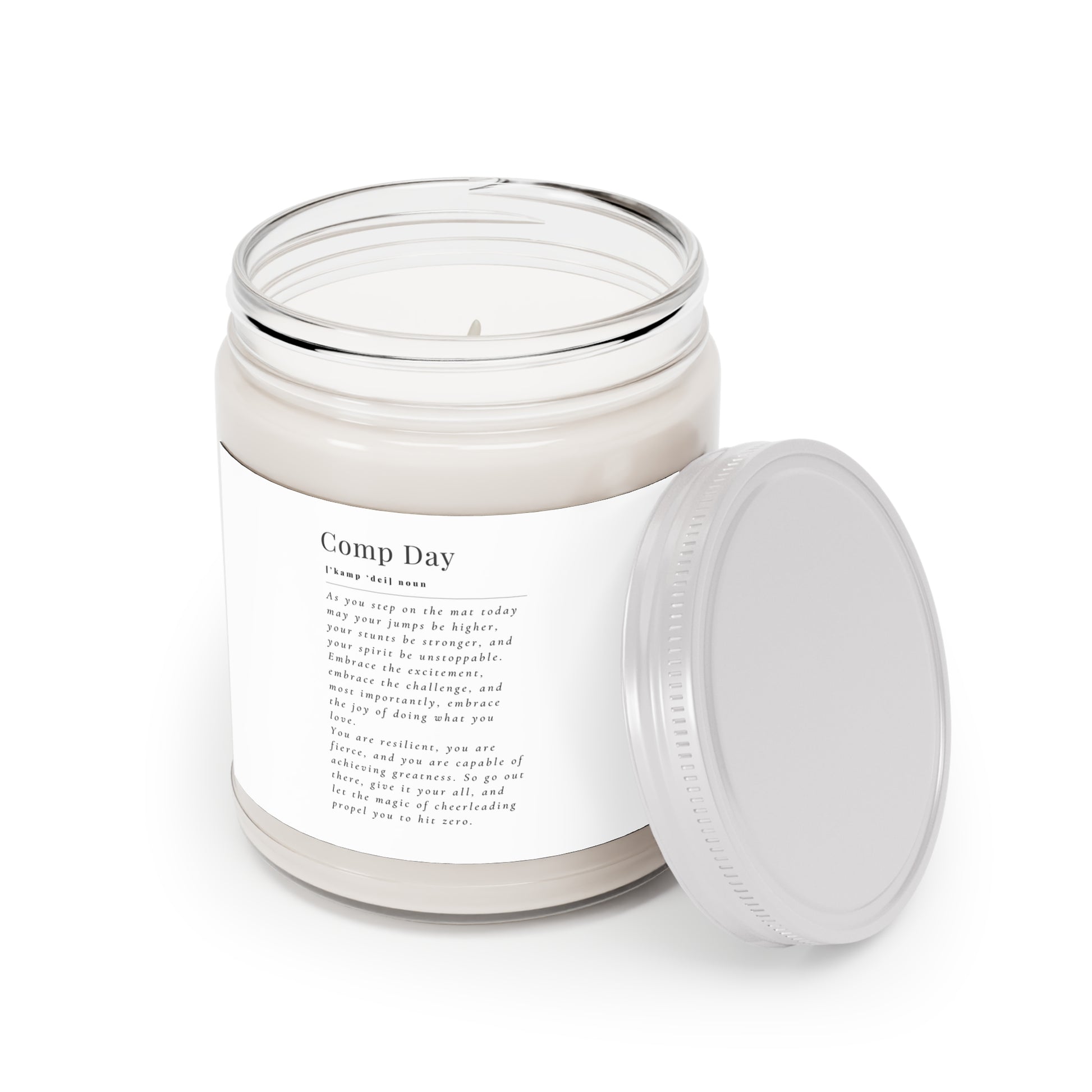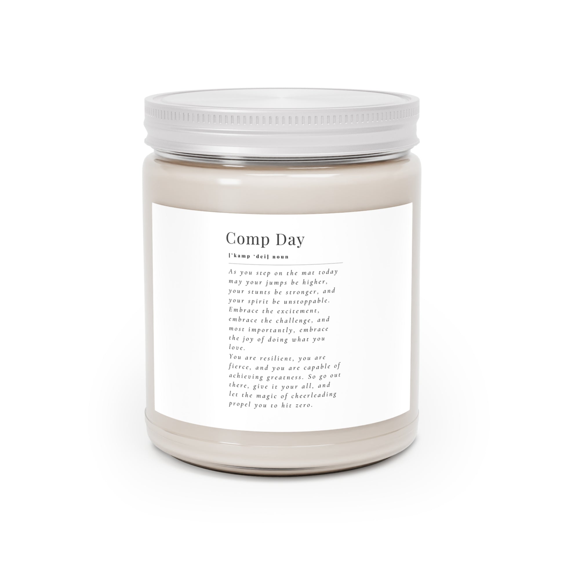 Cheerleading Competition Day Scented Soy Candle in a Jar - Ignite the Spirit! Key Features: Available in scents Vanilla Bean, Comfort Spice, Sea Breeze, Unscented, Fresh Balsam, Spiced Pumpkin Ginger, Pink Grapefruit and Eucalyptus Lavender Herb. Specially Crafted Cheerful Fragrance Clean-Burning Soy Wax for a Long-Lasting Glow Encased in a Stylish and Reusable Glass Jar with White Lid Perfect Gift for Cheer Enthusiasts.