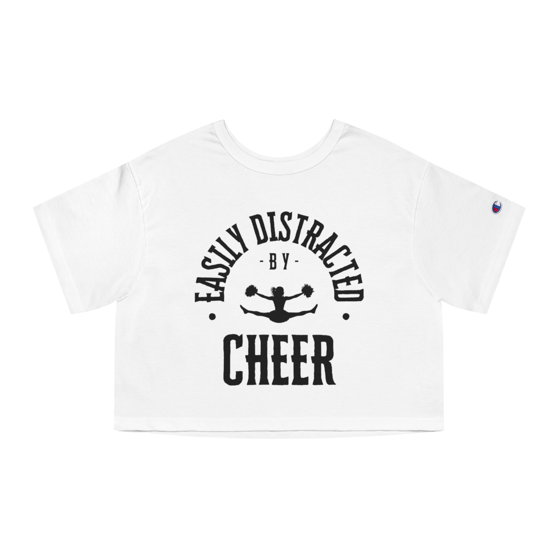 Stay stylish and spirited with our "Easily Distracted by Cheer" Cropped Women's Cheer Tee! This white cropped tee features bold black lettering that declares your love for cheerleading, accompanied by a graphic of a cheerleader jumping for joy. Made with soft and comfortable fabric, it's perfect for practices, games, or casual wear. Pair it with high-waisted shorts or leggings for a trendy and sporty look. Get your "Easily Distracted by Cheer" tee today and show off your passion for cheer!